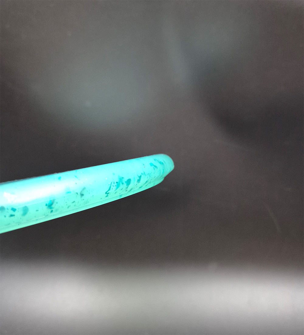 When we first started making discs from recycled phone cases we noticed that the designs on the cases created "flakes" that floated around in the rest of the 100% recycled plastic.