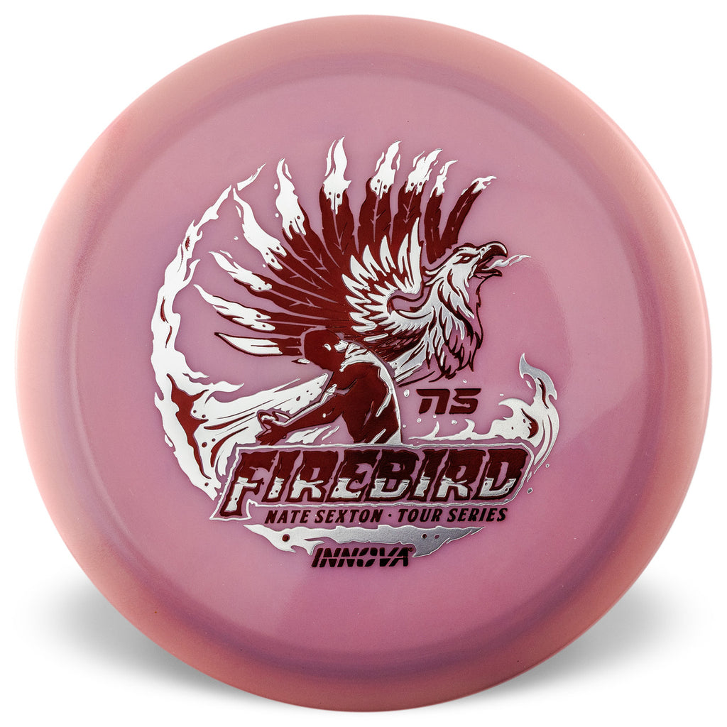 The 2026 Nate Sexton Proto Glow Champion Firebird is here, and we're going back to our roots. Made in the spirit of the original Sexton Firebird, but with our long-lasting Proto Glow Champion plastic, this flat, grippy, mellower run of Sexybirds offer a reliable, but workable, predictable flight and feel that have made it the most popular Tour Series disc of all time.