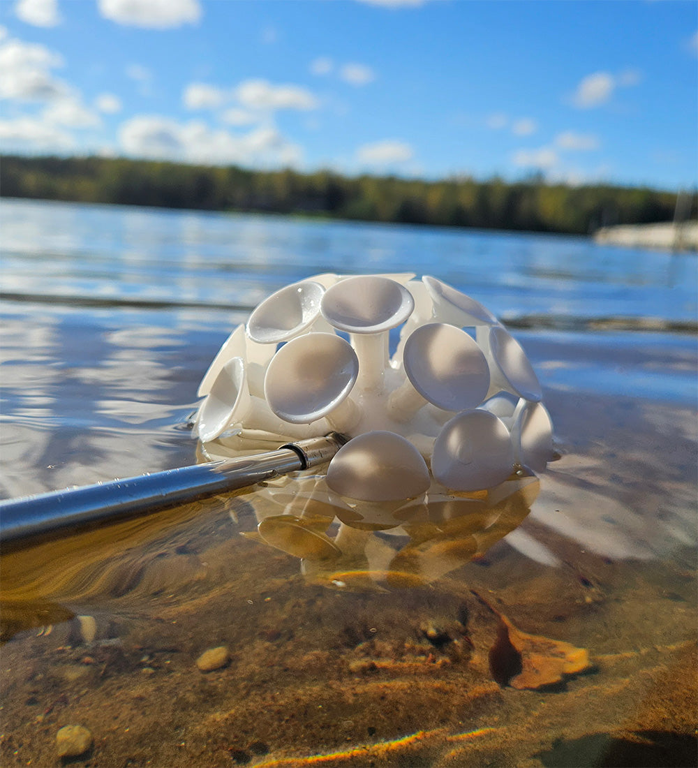 Vattentåligt Superlim: Sugplopparna är fästa med ett extra starkt lim, anpassat för blöta och andra tuffa förhållanden. våran konstruktion säkerställer att bollen behåller sin fulla lyftkraft även när den är helt nedsänkt i vatten och drar upp din disc.